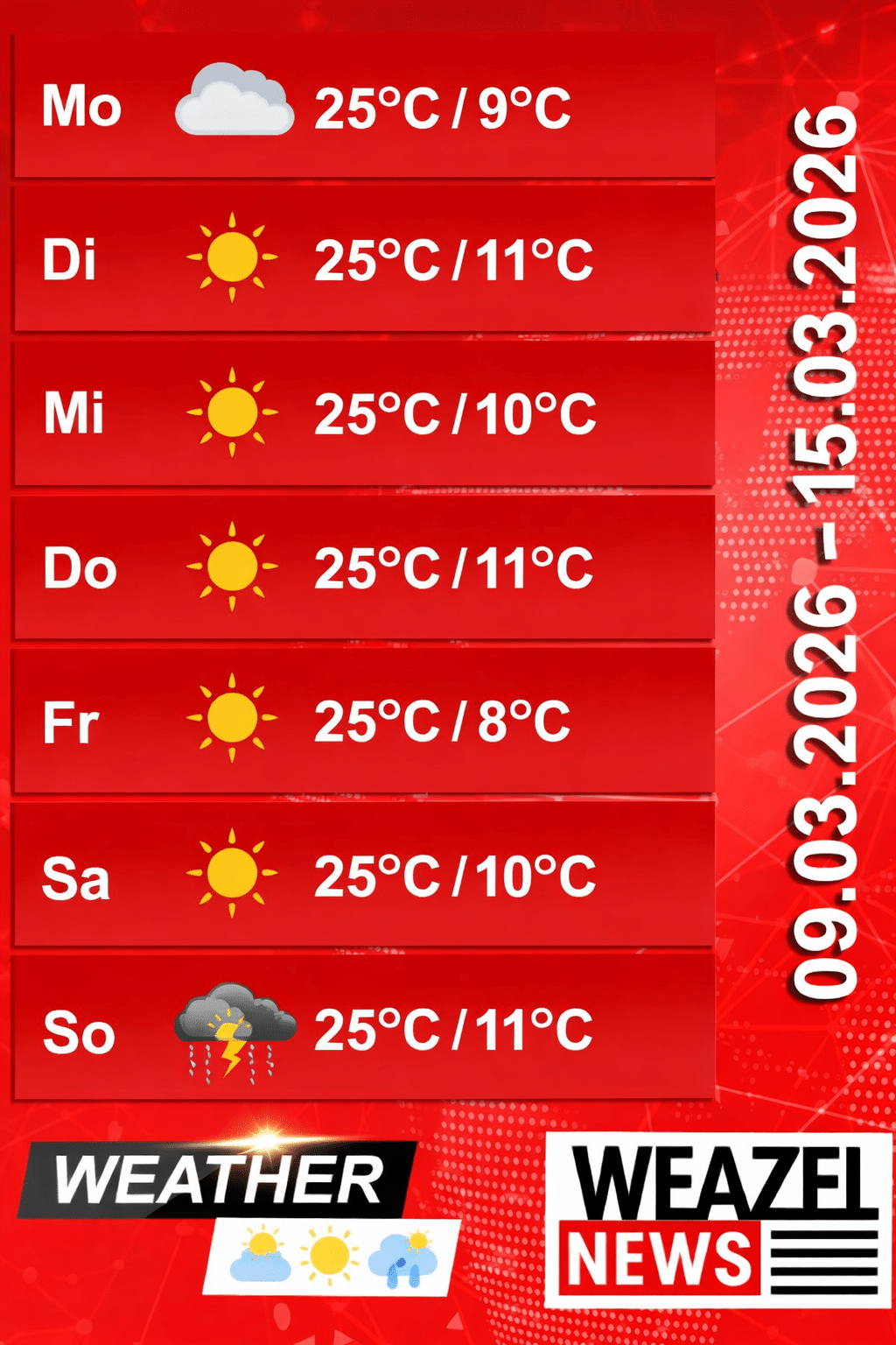 In der kommenden Woche erwartet die Einwohner von Los Santos überwiegend sonniges und warmes Wetter. Laut Vorhersagen werden viele helle Tage mit angenehmen Temperaturen erwartet. Die warmen Sonnenstrahlen laden dazu ein, die Stadt und ihre zahlreichen Freizeitmöglichkeiten zu genießen.