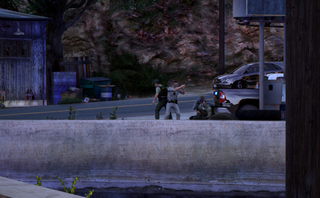 Exchange of shots in the skid row area