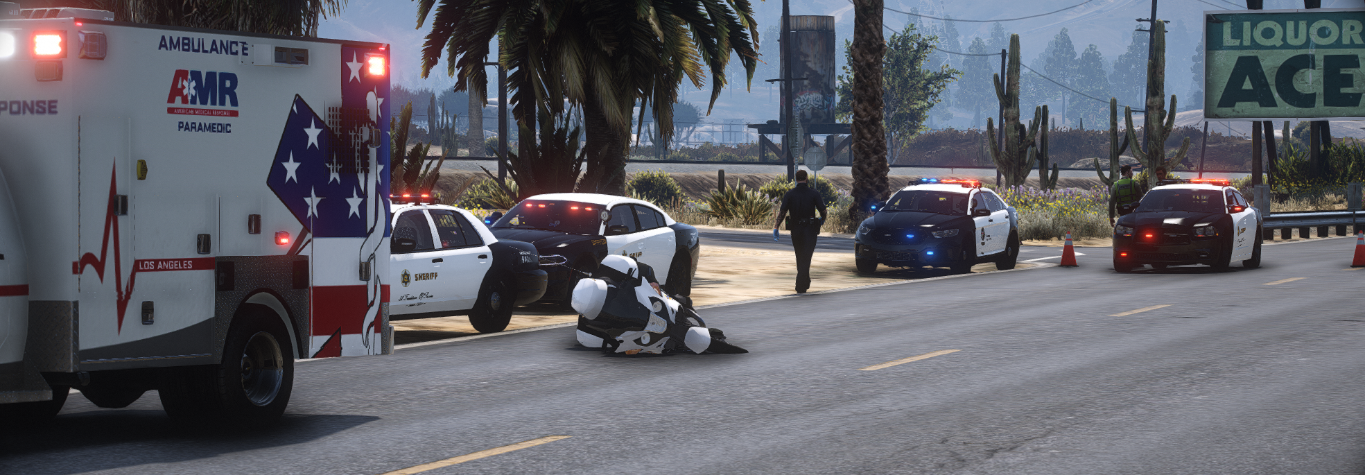 Bei dem verletzten Motorradfahrer handelt es sich um einen Sheriff der LASD Mary Unit. Der Sheriff erlitt dabei Verletzungen, deren Ausmaße zum jetzigen Zeitpunkt noch unbekannt sind. Er wurde zur medizinischen Versorgung in ein nahegelegenes Krankenhaus gebracht. Sein Zustand bleibt weiterhin unklar.