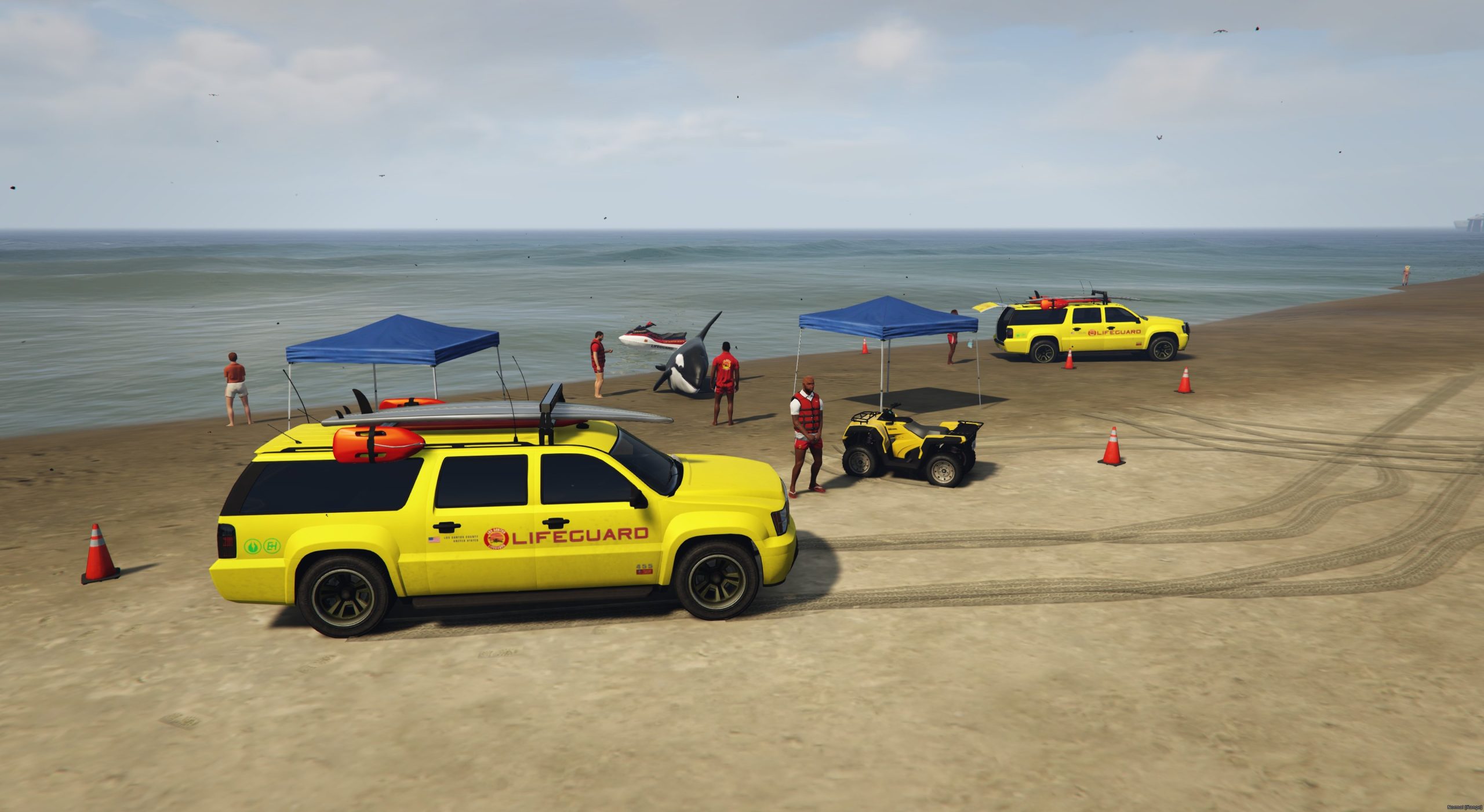 Laut Augenzeugen waren mehrere Badegäste im Wasser, als der Wal strandete, alarmierten die Augenzeugen umgehend die Lifeguards.